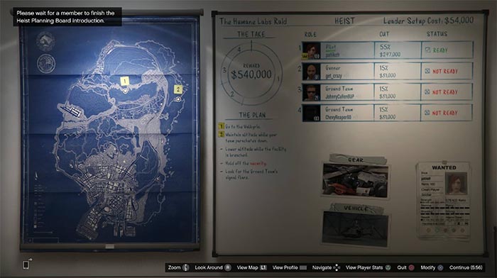 The setup phase involves completing a series of missions to gather the necessary equipment for the heist. These missions include stealing a helicopter, stealing a truck, and stealing a police car. The team will need to work together to complete these missions quickly and efficiently.